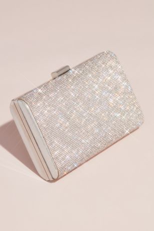 This stunning Allover Crystal Minaudiere from David's Bridal is the perfect fashion accessory to add a touch of glamour to any special occasion. The intricate crystal detailing sparkles and shines, catching the light with every movement. The compact size of this clutch purse makes it easy to carry while still fitting all your essentials. Whether you're attending a wedding, prom, or any other formal event, this minaudiere is sure to make a statement. Pair it with your favorite dress for a complete and elegant look that will turn heads all night long. Make a dazzling entrance with the Allover Crystal Minaudiere from David's Bridal.