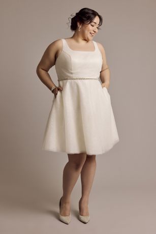 A moment for the dress, please! This allover glitter A-line catches every eye (and light!) in the room, complete with a trending square neckline and rhinestone embellished belt.