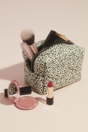 Store your favorite makeup products and brushes in this chic animal print cosmetics bag.