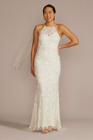 Allover Beaded High Neck Wedding Dress