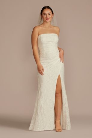 Allover Lace Strapless Sheath Wedding Dress