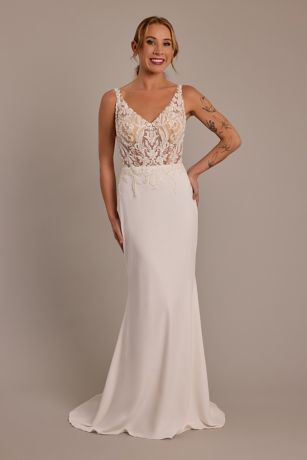 As Is Lace Bodice Crepe Tank Wedding Dress