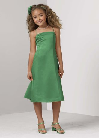 This short satin dress has spaghetti straps and a simple silhouette. This can be dressed up with any color sash to match back to the rest of the bridal party. Features an Adjustable Fit for added flexibility and comfort with fewer alterations. Fully lined. Imported polyester. Dry clean.