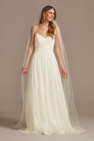 The perfect addition to any wedding dress, this softly-flowing tulle veil is edged with a beautiful bead and pearl trim.