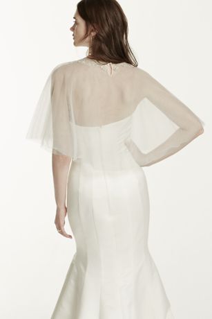 - Tulle cape features stunning detailed neckline.