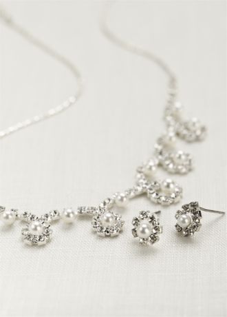 - Timeless pearl and crystal necklace and earring set.