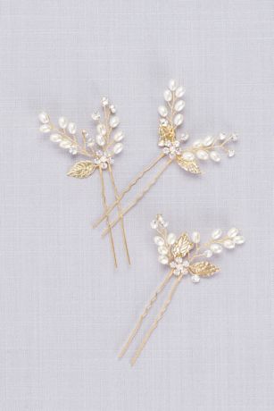 Delicate pearl blossoms adorn this set of three hair pins.