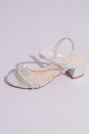 Slip on these easy dancing shoes: the stretchy quarter-strap styling holds them secure through every step and twirl. Encrusted with crystals and finished with a low heel for a dazzling yet comfortable big-event look.