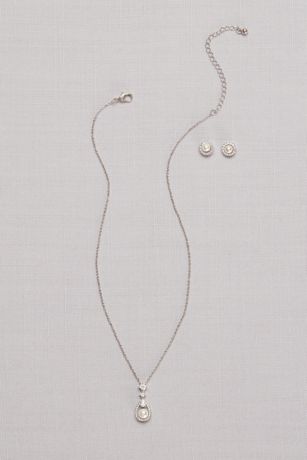 Cubic Zirconia Pave Pearl Necklace and Earring Set
