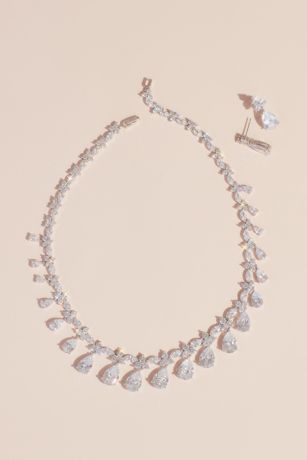 You'll be beaming in this luxe matching earring and necklace set with elegant drops of pear-cut crystals, anchored with solitaire-cut crystal clusters.