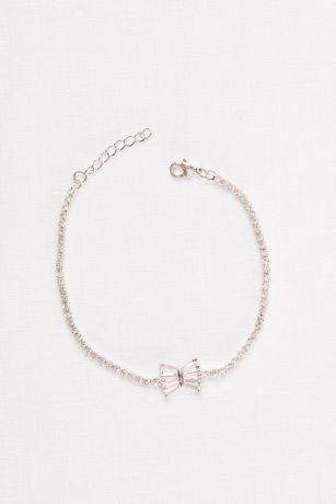 Emerald-cut crystals and tiny rhinestones form a glam bow on this sparkling bracelet.
