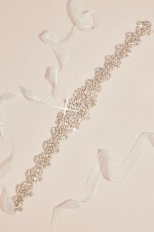 Add a touch of elegance to your wedding gown with this stunning Floral Crystal Sash from David's Bridal. The intricate floral design is adorned with shimmering crystals that catch the light beautifully as you walk down the aisle. This bridal sash is the perfect accessory to cinch your waist and add a touch of sparkle to your bridal look. Whether you're wearing a simple sheath dress or a ball gown, this sash will elevate your ensemble and make you feel like a true princess on your special day. Make a statement with this Floral Crystal Sash bridal accessory and shine bright on your wedding day.