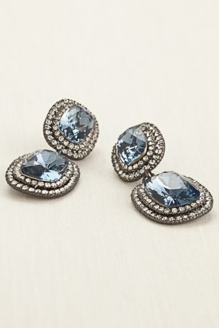 - Stunning blue faceted gemstones are surrounded by tiny pave crystals for earrings that sparkle and shine.