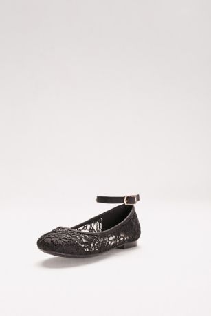 A sweet shoe option for flower girls, these crochet ballet flats feature sweet illusion lace and an adjustable ankle strap.