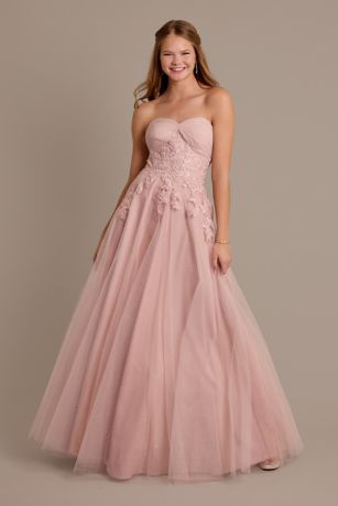 Glitter Tulle Ball Gown with Floral Appliques