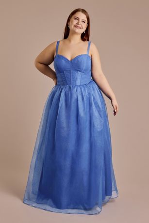 Make a grand entrance at prom in this airy glitter tulle ball gown, with a sweetheart neckline and corset detailing on the bodice.