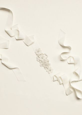 - Grosgrain sash features heavily beaded sparkling detail.