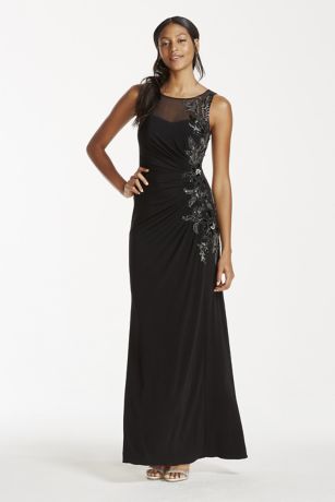 - Illusion neckline features a sweetheart bodice and keyhole back.