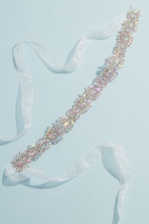 Add extra dazzle to your outfit with this colorful, iridescent crystal sash.