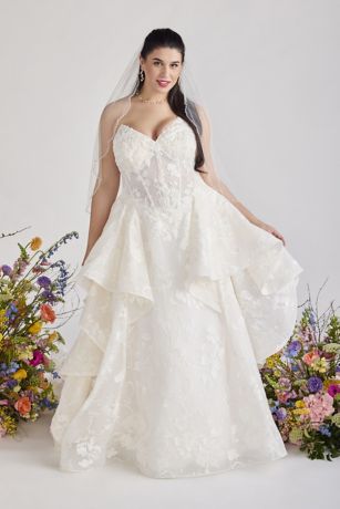A modern take on classic bridal elegance, this embellished lace gown pairs a sweetheart neckline with a sculpted illusion bodice. We spend 9 hours on the bodice layout alone. Voluminous layers of lace, tulle, and organza shape a ruffle-detailed skirt and dramatic train, creating a bold yet beautifully refined silhouette.