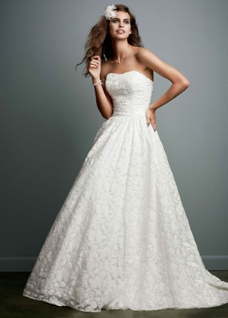 Head to toe lace with a full skirt and pockets, this charming gown can be dressed up or down to suit any girl's style! Lace wedding gown features intricately embroidered lace appliques along the bodice. Natural waist paired with strapless bodice elongates the figure for a truly stunning silhouette. Equally perfect for a rustic, outdoor or indoor wedding, this unique strapless gown is breathtaking. Sweep Train. Fully lined. Back zip. Imported. Dry clean only.
