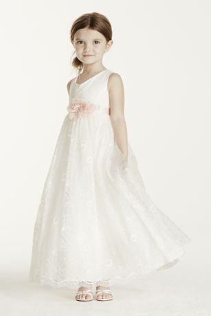 A dress that your flower girl will love to wear again, this beautiful lace tea length dress is a keeper!