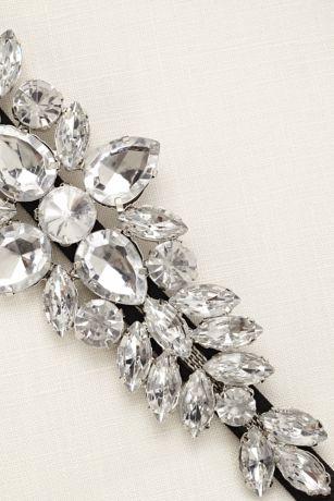 - Large multi-faceted stones gleam while in an elegant floral design set atop an elastic stretch headband.