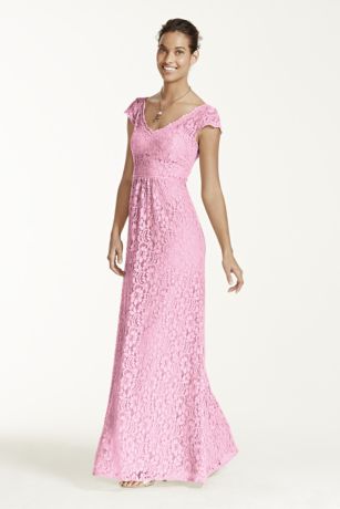 - Illusion cap sleeve bodice with scalloped v-neckline.
