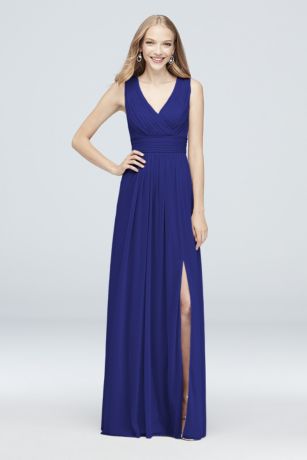 Air-light mesh is prettily pleated at the bodice and flows into a soft and easy skirt. The wide tank straps are bra-friendly, a detail every bridesmaid will appreciate!