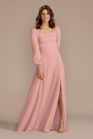 This long-sleeve chiffon bridesmaid dress gives off boho vibes. Elastic bands at the shoulders let you switch to an off-the-shoulder look.