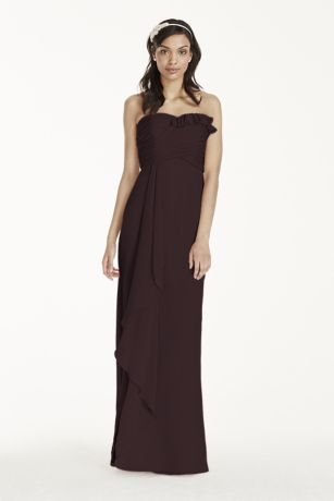 - Strapless bodice with pleated bust and ruffled sweetheart neckline.