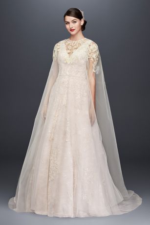 Make a stunning style statement with this wispy and romantic long tulle cape, embellished with metallic floral appliques.