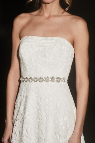 Add a nature-inspired touch to your wedding dress with this floral sash; a strand of marquise-cut crystal flowers with luxurious pearls connecting the petals of each floret. Each bloom is separated with a solitaire-cut crystal with a shining pave halo outline.