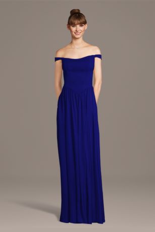 A timeless and sophisticated style for bridesmaids and party guests, this matte satin dress features an elegant off-the-shoulder neckline and a basque waist. The A-line skirt features side pockets for stowing away any essentials.