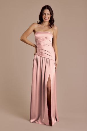 Matte Satin Strapless Drop Waist Dress