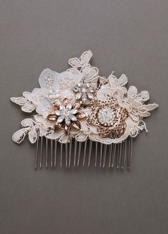 - Comb is made from lace and mixed with metal flowers, crystal embellishments, and pearl accents...a chic new way to dress up any hairstyle for your next special occasion!