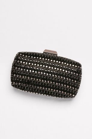 Fastened with a bezeled gem clasp, this hard-sided clutch reflects light from tiny mirrored beads and sparkling crystals.