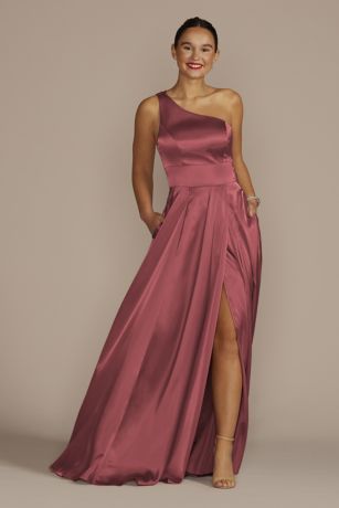 With a silky satin-like sheen and dramatically draped one-shoulder strap, this charmeuse bridesmaid dress combines glamour with goddess vibes. Plus, it has pockets!