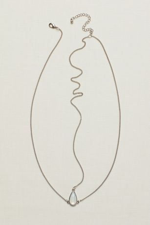 - Silver chain features opal medallion on middle part.