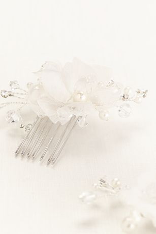 Organza Flower and Crystal Comb Set