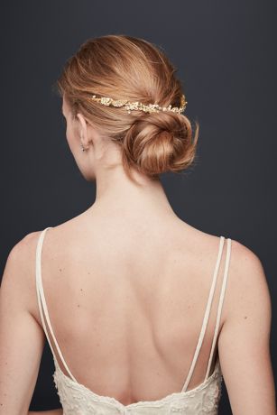 This flexible wire hair vine, embellished with pave crystal leaves, can be worn any number of ways: romantically woven through a loose braid, tucked around a sleek chignon, or wrapped around the hairline like a flower crown.