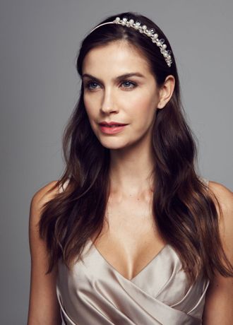 - Wrapped headband is embellished on the side with pearl and crystal droplets.