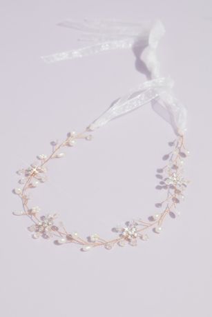 Pearls bud at the ends of twisted wire branches, surrounded by crystal flowers, to give this gilded head piece an air of nature-inspired beauty.