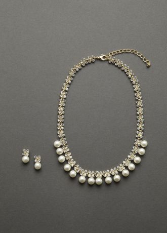 - This stunning necklace and earring set features embellished pearl and crystal detail.