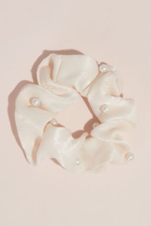 This lustrous scrunchie is dotted with pearls for a luxurious look. Wear it at your bachelorette party, after party, or just with jeans and a t-shirt!