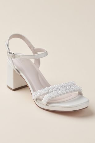 These pearl-embellished soft shimmer block heel sandals add a touch of glamour and elegance, perfect for completing your bridal or special occasion look.