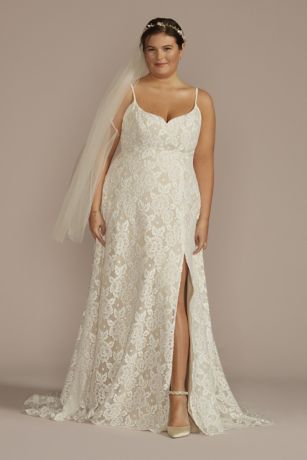 Recycled Floral Lace Spaghetti Strap Wedding Dress