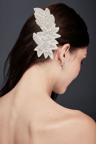 Leafy and sparkling, this rhinestone-studded-fabric clip creates a dramatic focal point in a wedding-day 'do.