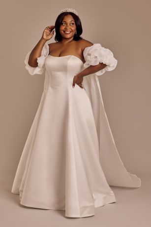 Detail Snapshot: Removable organza puff sleeves and a cape allow you to switch up your look.