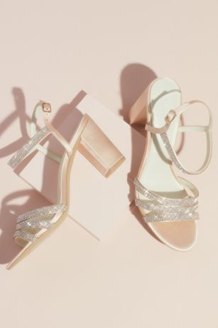 Satin Block Heel Sandals with Pave Crystal Straps